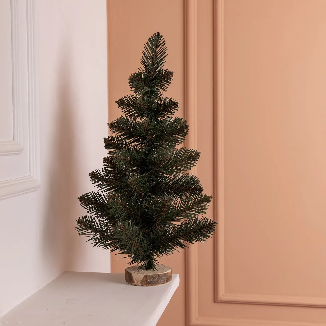 Головною відмінністю є поєднання натуральної підставки зі зрізу дерева та якісної ПВХ хвої, що надає моделі природного і гармонійного вигляду. Крім того, завдяки компактним розмірам і продуманій конструкції ця міні-ялинка відрізняється зручністю використання і універсальністю.