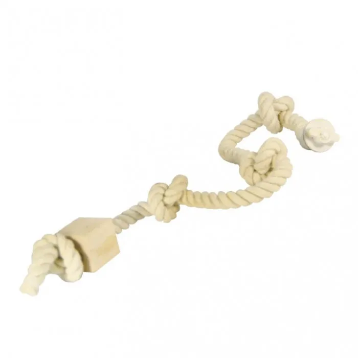 Канат для лазіння на 4 вузли, виготовлення з натуральної бавовни та дерева, є чудовиськом вібором для власників птахів. З діаметром 14 мм і довжиною 45 см, цей канат легко кріпитися в клітці або за ними між собою пластиковими застібками, запічні безпеки та комфорт тварини під годину гри.