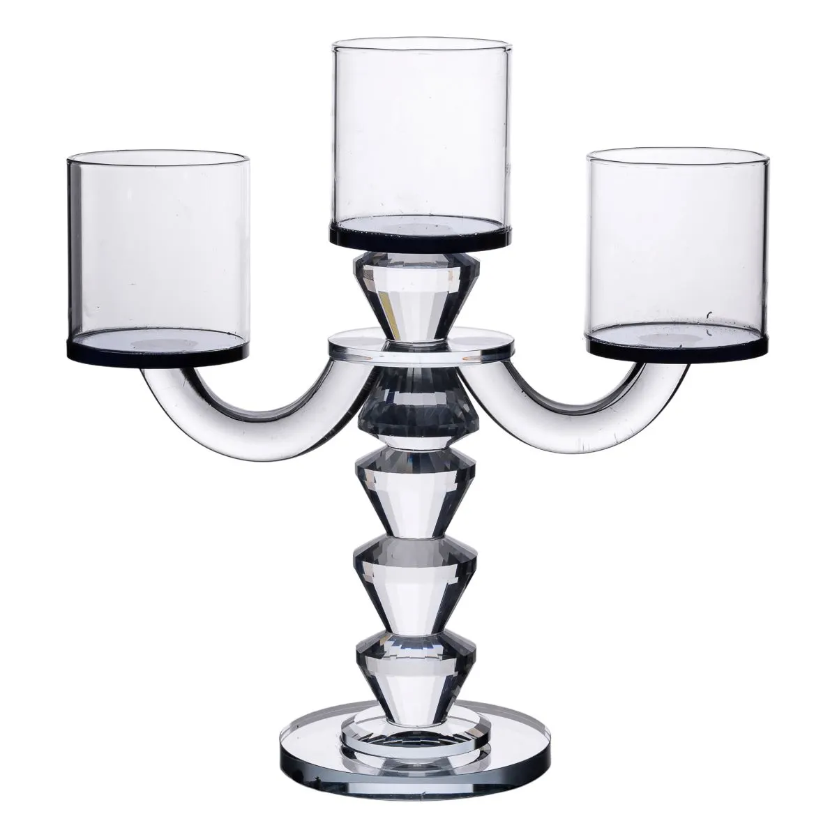 Канделябр на 3 свічки 22×9×23 см підсвічник декоративний скляний на ніжці Чорний HP-4-22
