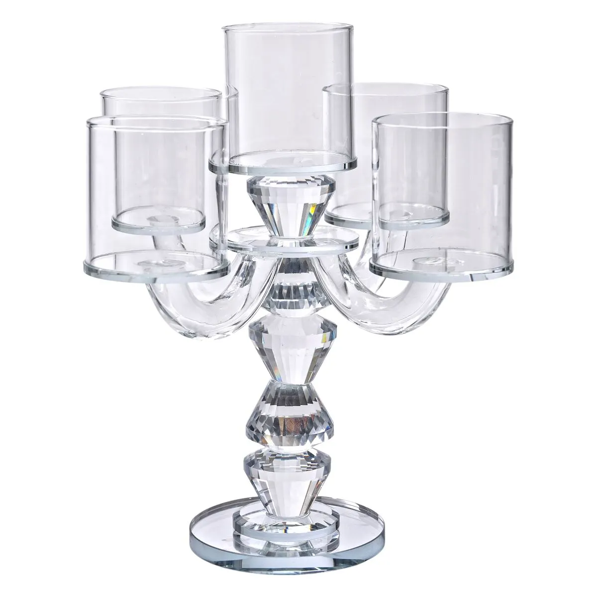 Канделябр на 5 свічок 19×19×24 см підсвічник декоративний скляний на ніжці прозорий HP-4-31