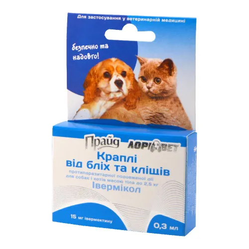 Краплі для котів і собак (до 2,5кг) "Прайд" проти бліх та кліщів, 15мг