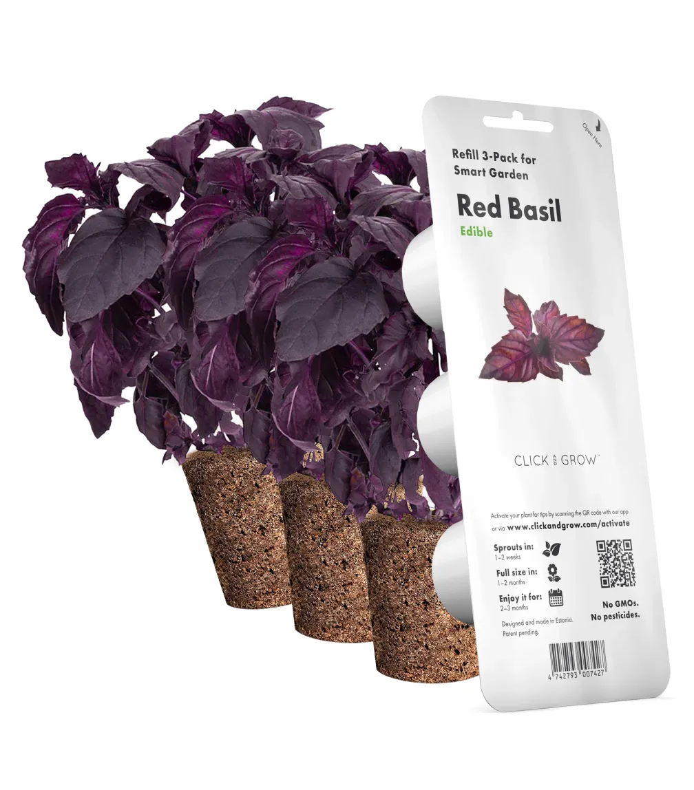 Червоний базилік Click&Grow — одна з найбільш універсальних трав. Це ідеальний свіжий додаток до домашніх вишукувань. Ви зможете пережити «сад до тарілки» досвід прямо на вашій кухні. Важливо також, що червоний базилік неймовірно простий у вирощуванні за умов вашого домашнього саду.