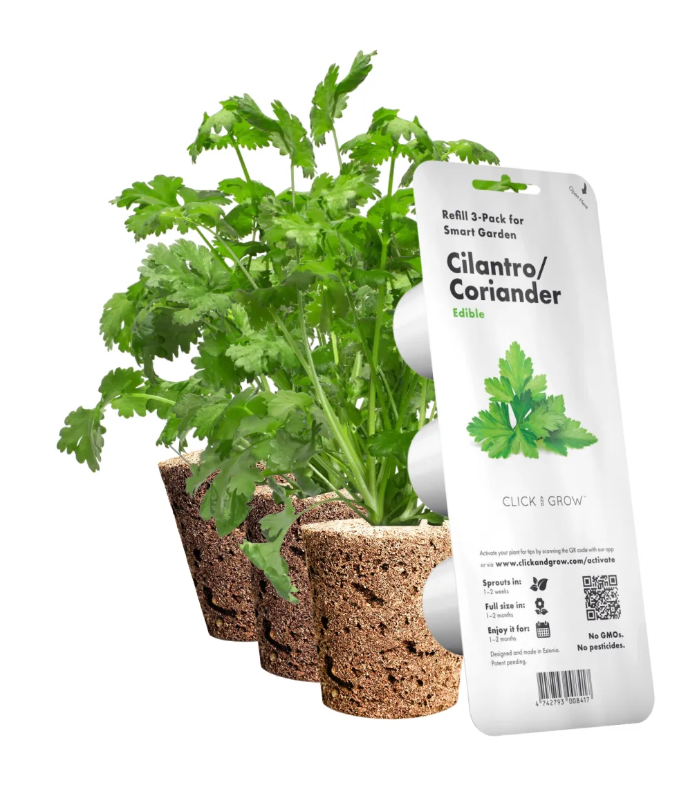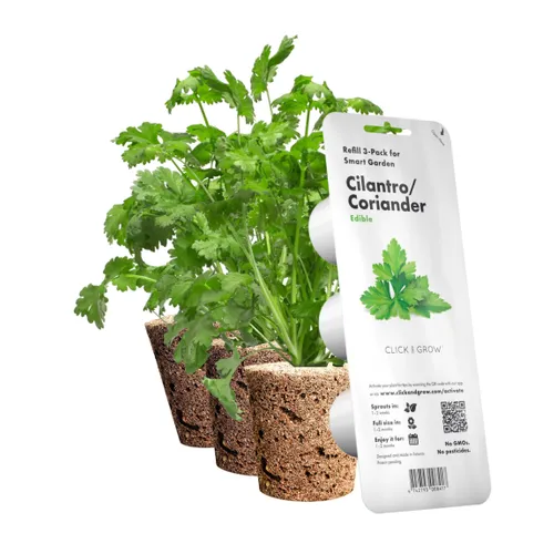 Картридж для розумної ферми Click&Grow, Коріандр пропонує чудове рішення для любителів свіжих трав. Коріандр (або кінза) забезпечує багатошаровий смак та аромат, які надають особливого характеру різноманітним стравам. Насіння і листя цієї рослини здатні перетворити звичайнісінькі страви на кулінарні шедеври.