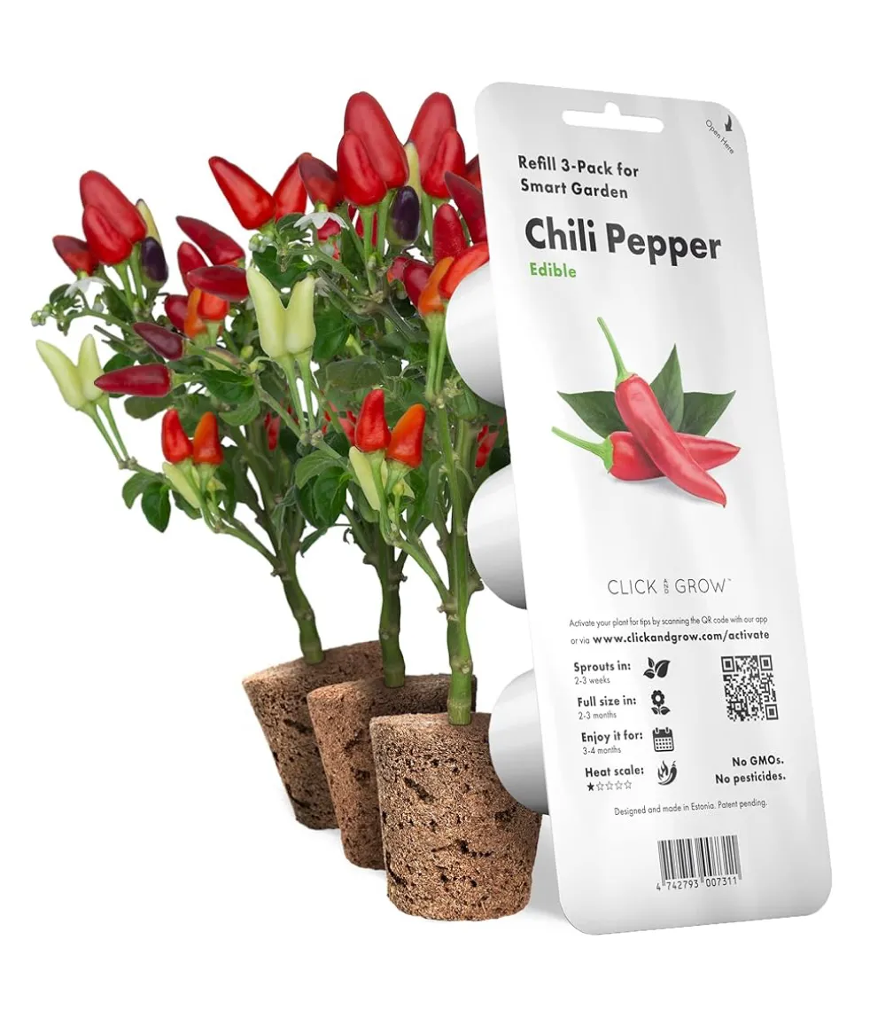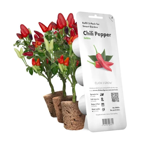 Картридж для розумної ферми Click&Grow з перцем чилі — - це інноваційний продукт, створений для зручності та ефективності у вирощуванні рослин. Використання технології Smart Soil, натхненної науковими досягненнями NASA, робить цей картридж ідеальним вибором для тих, хто хоче виростити гострий та ароматний перець чилі без зайвого клопоту.