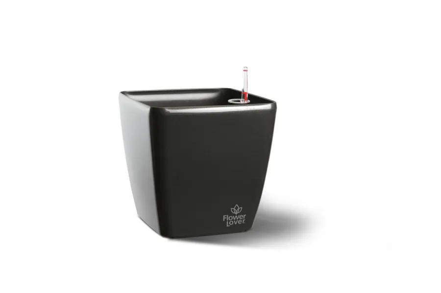 Кашпо із системою автополиву Plastkon "Flower Lover" Quadrato 18x18x17 см, глянцевий, антрацит