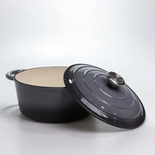 Емальоване покриття захищає метал від окислення та запобігає прилипання їжі до поверхні, полегшуючи догляд за посудом. Кришка виконана з того ж матеріалу, що й корпус, і щільно прилягає, зберігаючи внутрішню вологу та аромати. Завдяки розмірам і матеріалу, посуд підходить для використання на газових, електричних і індукційних плитах, а також в духовій шафі.