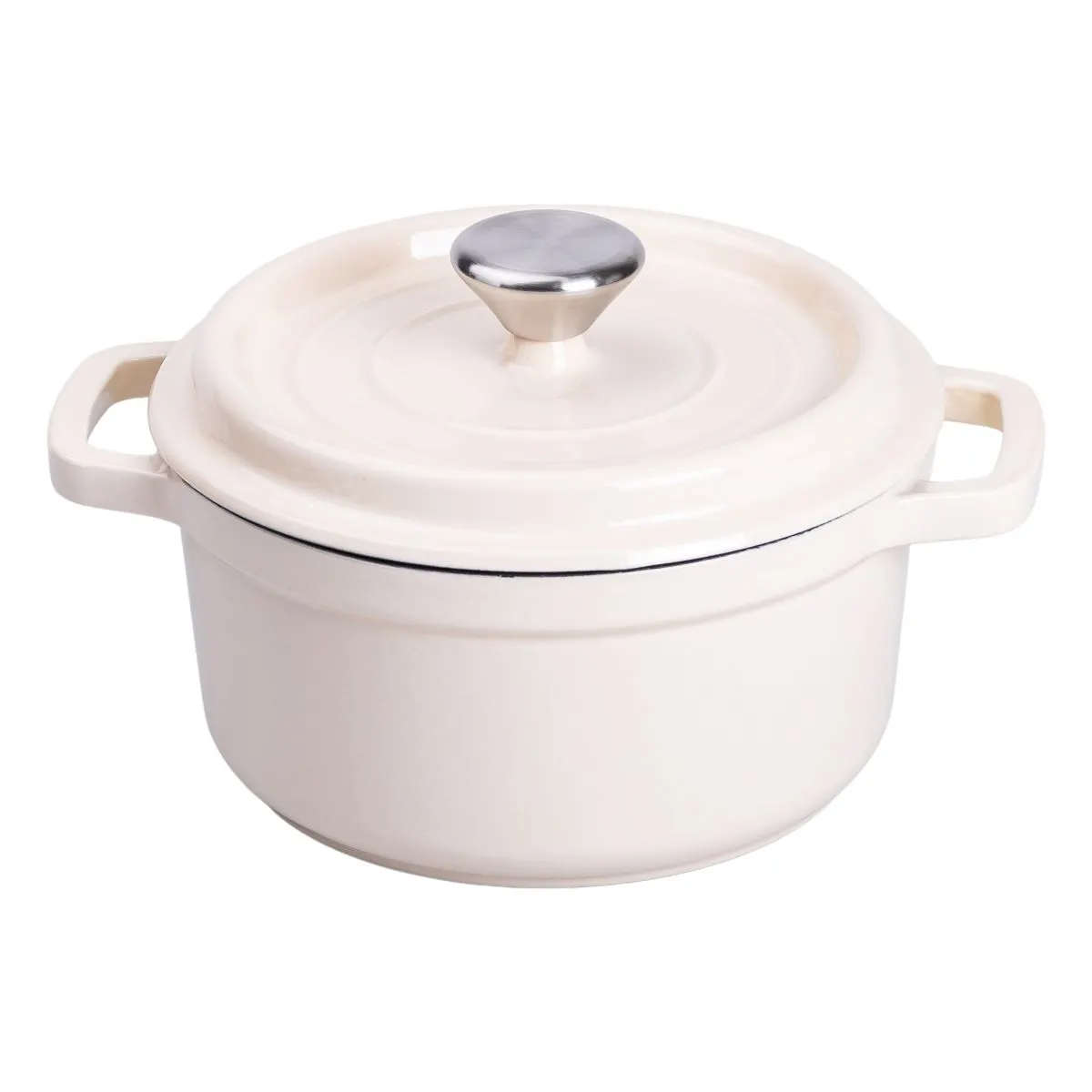 Каструля чавунна емальована 2 л з кришкою Ø20 см Бежева HP-1-2BE