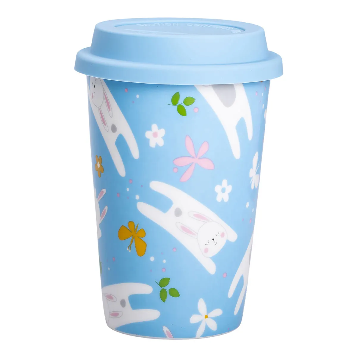 Керамічна склянка з силіконовою кришкою та отвором для трубочки 420 (мл) кружка без ручки RX-N240546BL