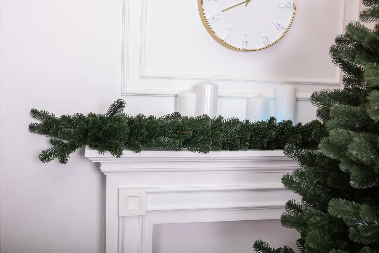 Хвойна гірлянда органічно виглядає в домашніх інтер'єрах – на вікнах, дверних арках, камінах, перилах сходів, шторах і святкових столах. Завдяки своїй довжині та гнучкості вона може бути використана для оформлення різних конструкцій, акцентуючи атмосферу свята.