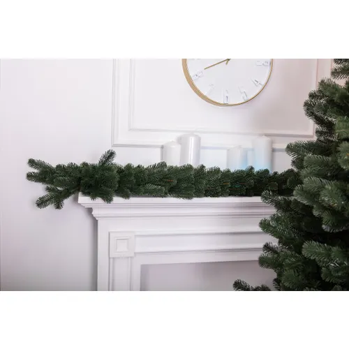 Довжина гірлянди становить 2 метри, що дозволяє використовувати її як самостійне прикрашання або комбінувати з іншими елементами святкового декору. Колір виробу – насичений зелений, типовий для хвойних рослин, який гармонійно впишеться в будь-який інтер'єр.