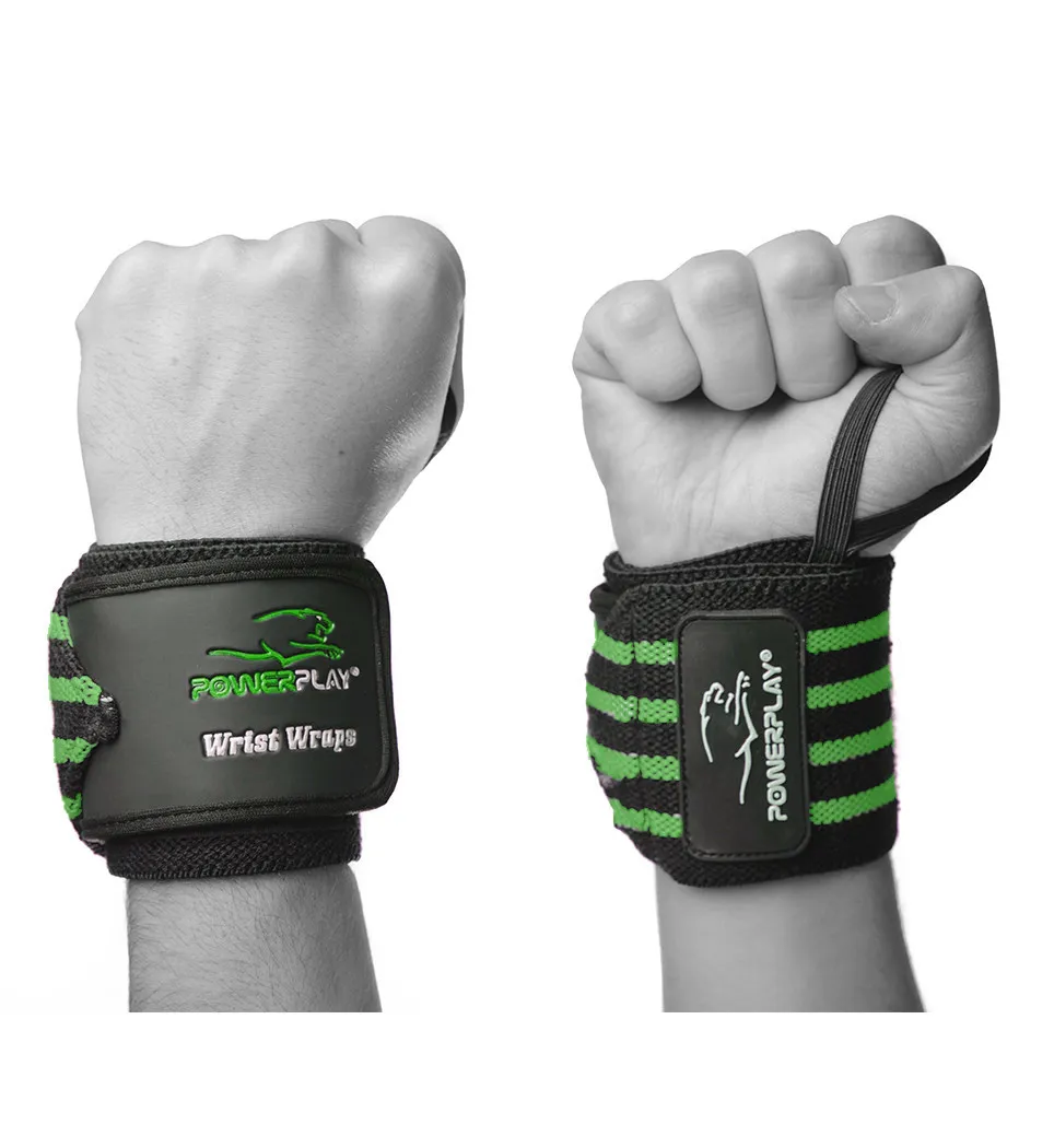 Бінти для зап'ясть PowerPlay 3081 Чорно-Зелені - це необхідний аксесуар для тих, хто займається бодібілдингом та пауерліфтингом. Вони ідеально підходять для виконання силових вправ, забезпечуючи підтримку та захист суглобів від перенапруг та травм.