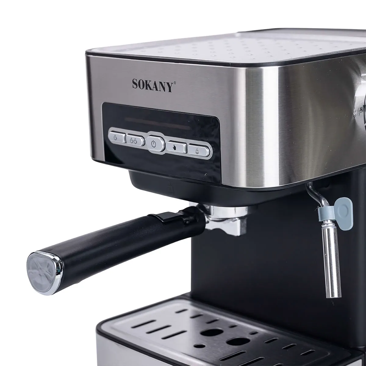 Кавоварка з трубкою для молока 1,6 л кавомашина для дому 850 Вт Sokany SK-6862 є сучасним приладом, що поєднує функціональність і стильний дизайн. Це напівавтоматична рожкова кавомашина, яка дозволяє швидко приготувати еспресо, капучино або лате вдома. Завдяки потужності 850 Вт і тиску помпи до 15 бар апарат забезпечує швидкий нагрів і екстракцію ароматного напою з професійною якістю.