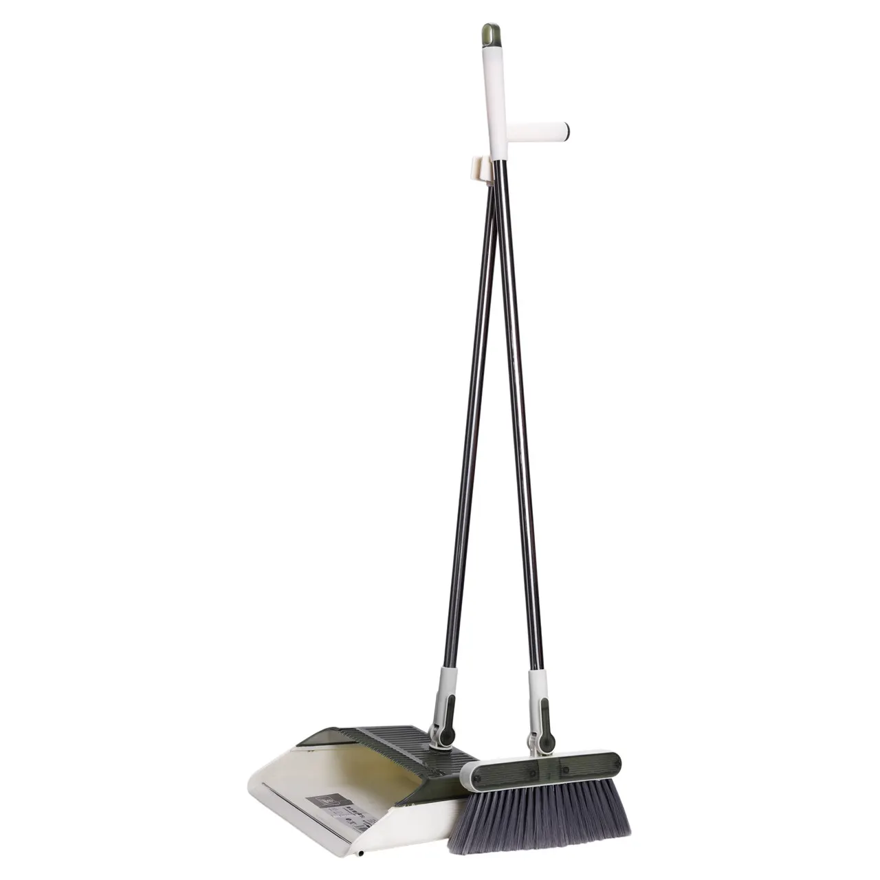 Цей комплект для прибирання включає віник з щільною синтетичною щетиною та совок, оснащений високими бортами для зручного збору сміття. Довгі ручки на обох елементах виключають необхідність нахилятися під час прибирання, що знижує навантаження на спину та підвищує комфорт під час роботи.