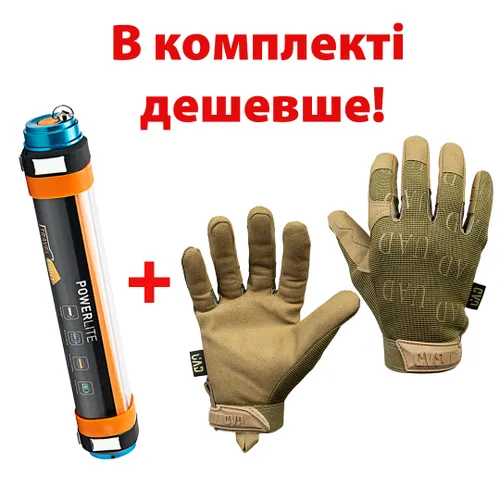 Характеристики "Комплект Кемпінговий ліхтар-лампа-повербанк 25см UAD 5200 мАч Рукавички тактичні повнопалі сенсорні ARES UAD Койот XXL"