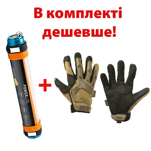 Характеристики "Комплект Кемпінговий ліхтар-лампа-повербанк 25см UAD 5200 мАч Рукавички тактичні повнопалі M-PACT сенсорні Mechanix UAD Койот L"
