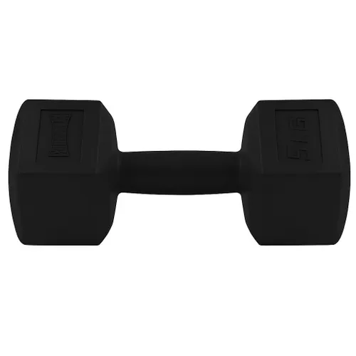 Вага однієї гантелі становить 5 кг, що робить її універсальною для базових вправ. Тип конструкції — суцільна, що забезпечує додаткову міцність і довговічність.
