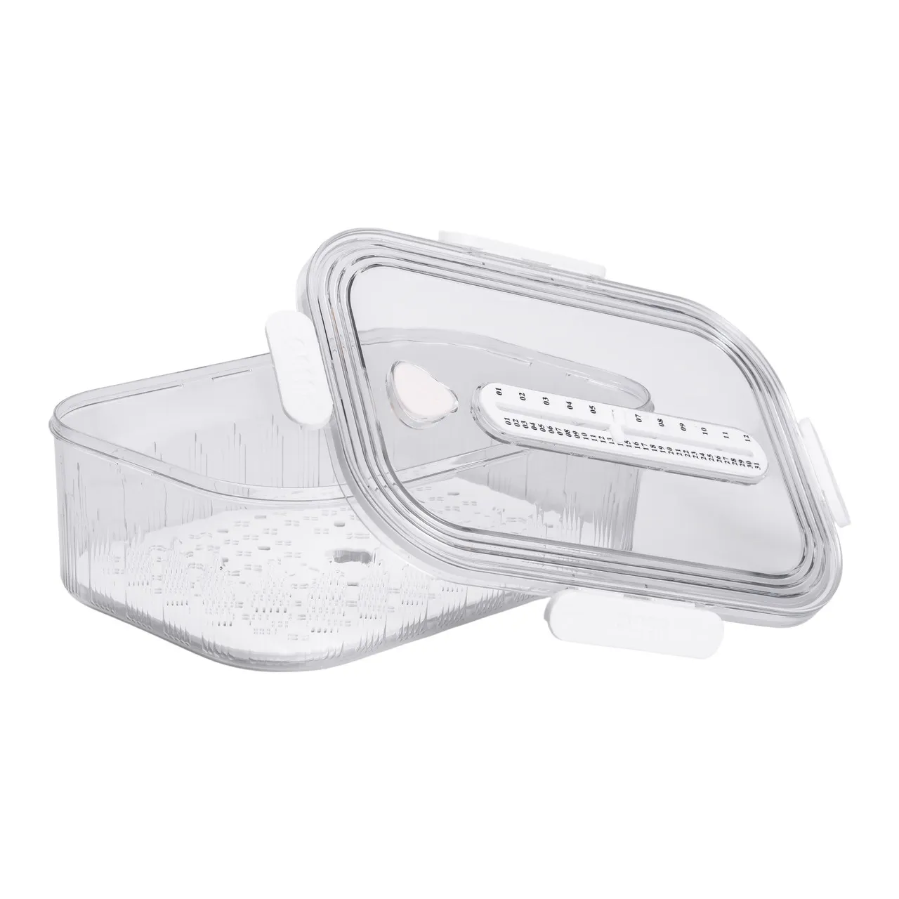 Кришка має герметичне закриття з защіпками та оснащена силіконовою прокладкою, що забезпечує надійний захист від проливів та сторонніх запахів. Особливістю контейнера є клапан вентиляції з можливістю регулювання вологості, що важливо для збереження оптимальних умов зберігання різних категорій продуктів.