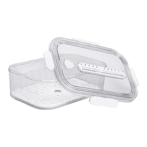Використання цього контейнера забезпечує зручність зберігання, захищає продукти від проникнення сторонніх запахів і вологи. Завдяки герметичності та регульованій вентиляції зберігається свіжість овочів, фруктів, страв і напівфабрикатів.