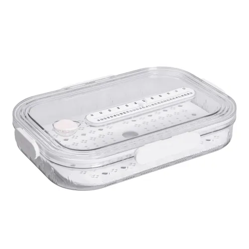 Контейнер оснащений надійною кришкою з защіпками, яка забезпечує герметичність і запобігає проникненню сторонніх запахів. У прозорому корпусі зручно слідкувати за вмістом без необхідності відкривати ємність. Також у комплекті йде знімна вставка-сито з отворами, яка відділяє продукти від зайвої вологи, зберігаючи їхню свіжість і смак.