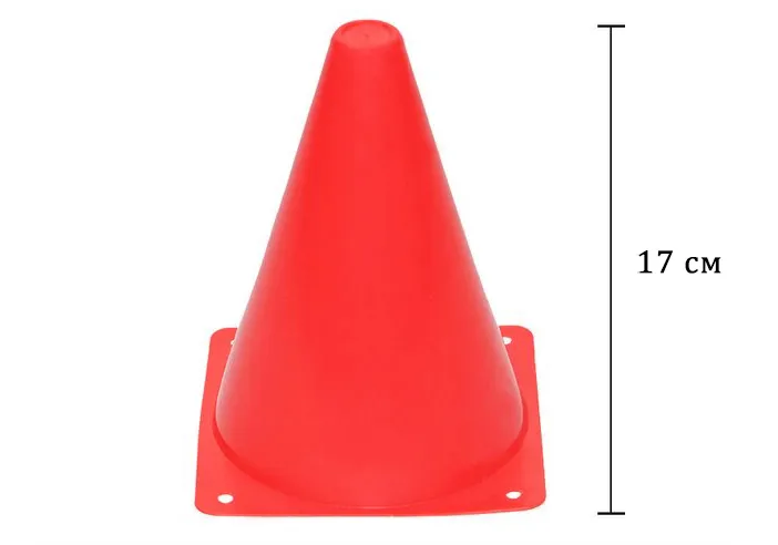 Виготовлення з PVC забезпечує міцність та довговічність. Конуси мають висоту 17 см і представлені у червоному кольорі, що робить їх видимими та привертає увагу гравців.