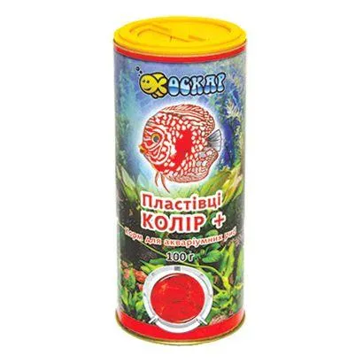 Характеристики "Корм для забарвлення риб Пластівці Колір + ТМ "ОСКАР", туба 100 г / 3 упаковки"