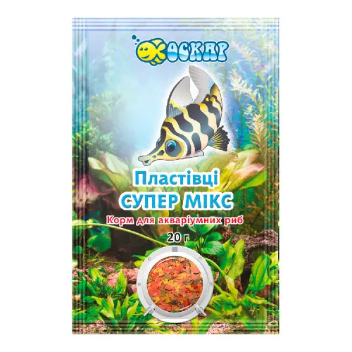 Характеристики "Корм для риб Пластівці супер Мікс ТМ "ОСКАР", пакет 20 г / комплект з 20 пакетів"
