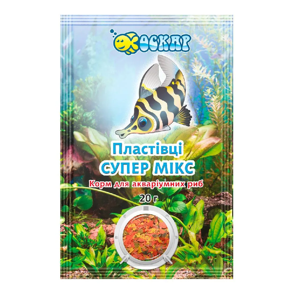 Корм для риб Пластівці супер Мікс ТМ "ОСКАР", пакет 20 г/ комплект з 20 пакетів