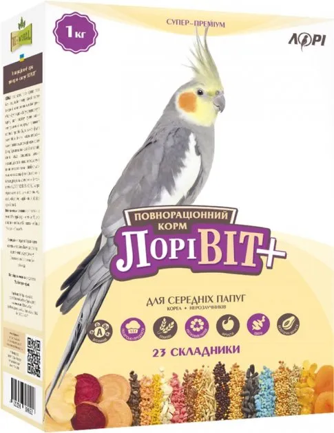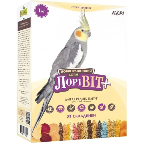 Характеристики "Корм для середніх папуг вітамінізований Лорівіт + Лорі 1 кг"