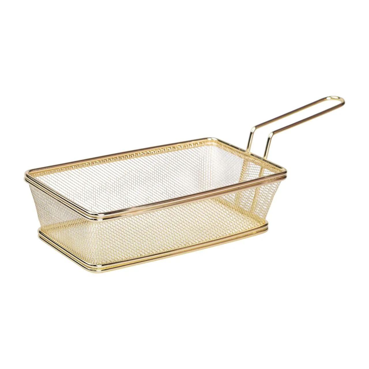 Кошик сервірувальний для подачі фрі та снеків 21х11.5х5.5 см з нержавіючої сталі Золото HP-19-11-G