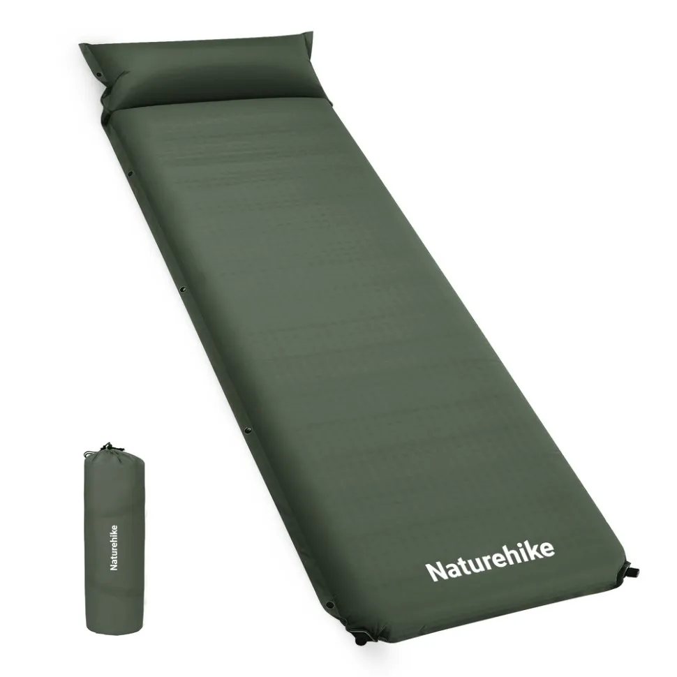 Килимок самонадувний одномісний з подушкою Naturehike CNK2450WS020, 100 мм, темно-зелений