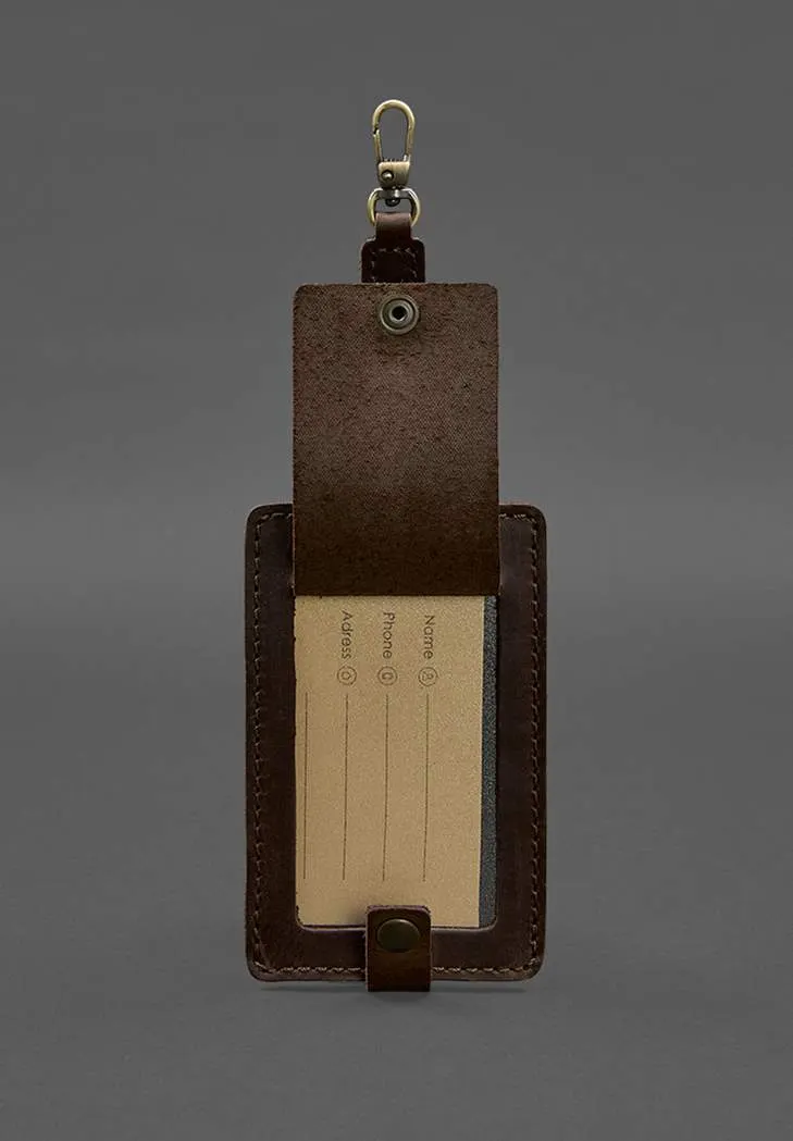 Шкіряна бірка для багажу Бланк-тег темно-коричнева Crazy Horse
