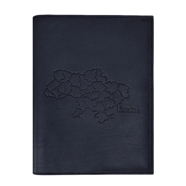 Шкіряна обкладинка для нотаріального реєстру з мапою України темно-синя