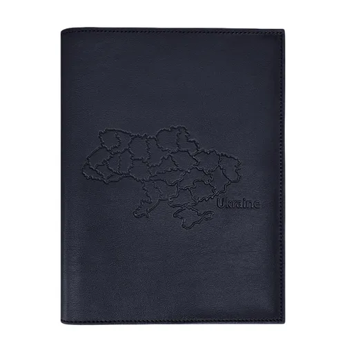 Характеристики "Шкіряна обкладинка для нотаріального реєстру з мапою України темно-синя"