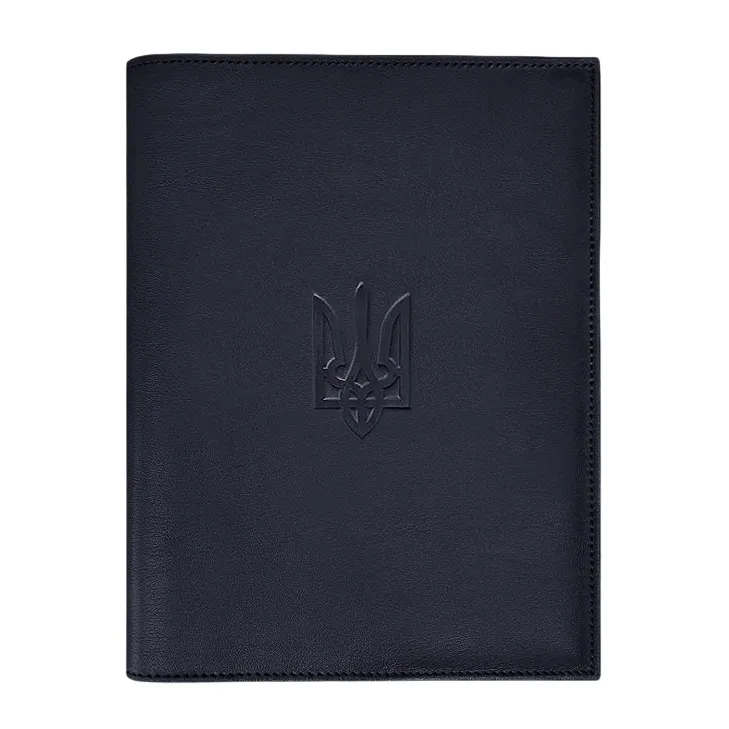 Опис шкіряної обкладинки для нотаріального реєстру із Тризубом темно-синього кольору