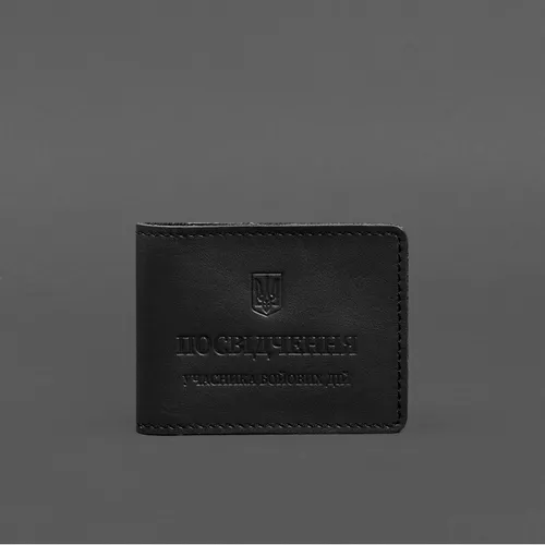 Шкіряна обкладинка для посвідчення учасника бойових дій (УБД) із кишенею для жетону чорна