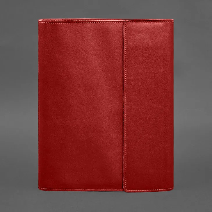 Шкіряна папка для документів "Сімейна" А4 на сегрегаторі з файлами червоний