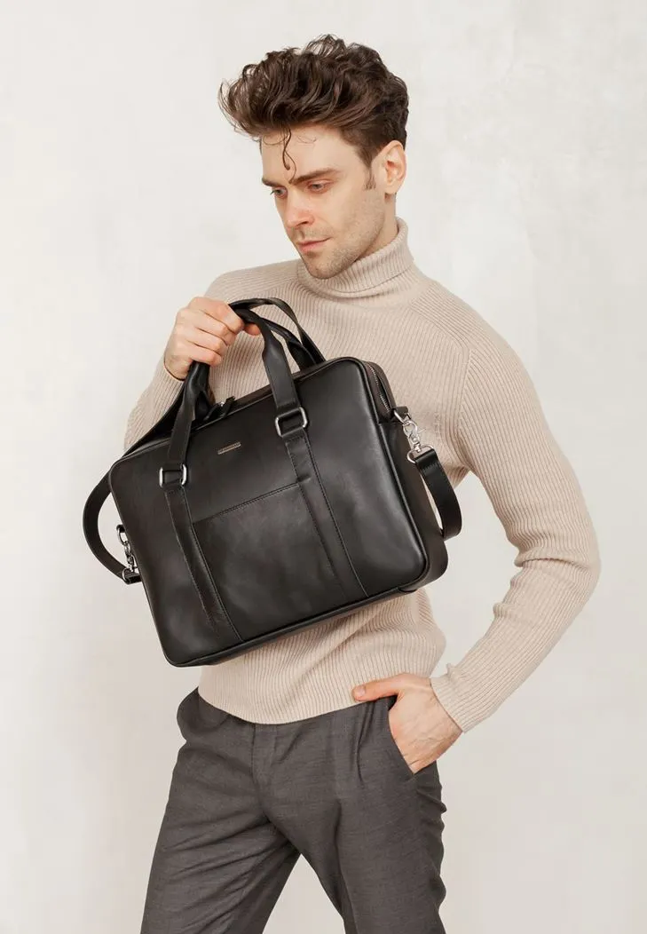 Шкіряна сумка для ноутбука і документів чорна