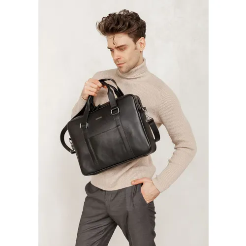 Шкіряна сумка для ноутбука та документів "чорна BlankNote" (BN-BAG-37-g) є ідеальним аксесуаром для ділових та активних людей. Вона оснащена спеціальною кишенею для ноутбука, що закривається на кнопку, а основне відділення сумки захищене блискавкою. Додатково, всередині сумки знаходяться дві кишені для дрібниць та ще одна кишеня зовні.