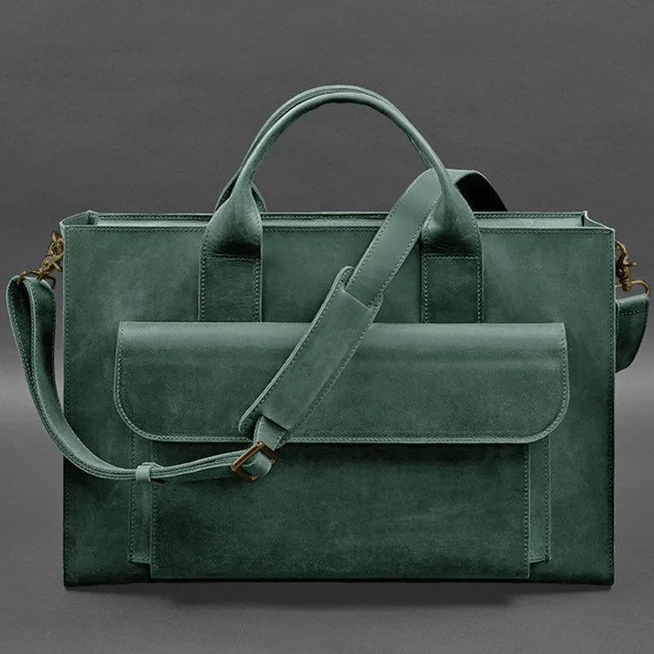 Шкіряна сумка для ноутбука та документів Універсальна зелена Crazy Horse