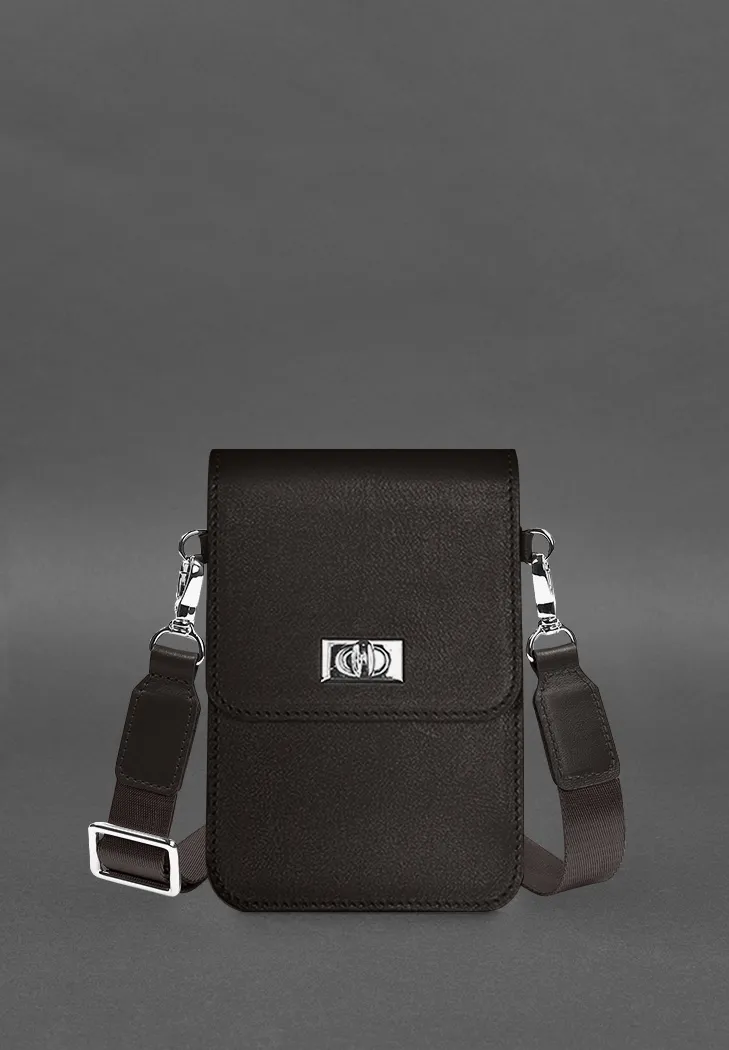 Шкіряна сумка для телефону Tina Темно-коричнева