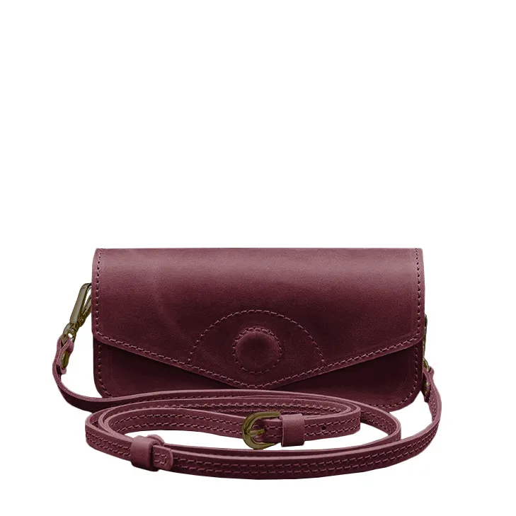 Шкіряна сумка-футляр для окулярів (міні-сумка) бордовий Crazy Horse