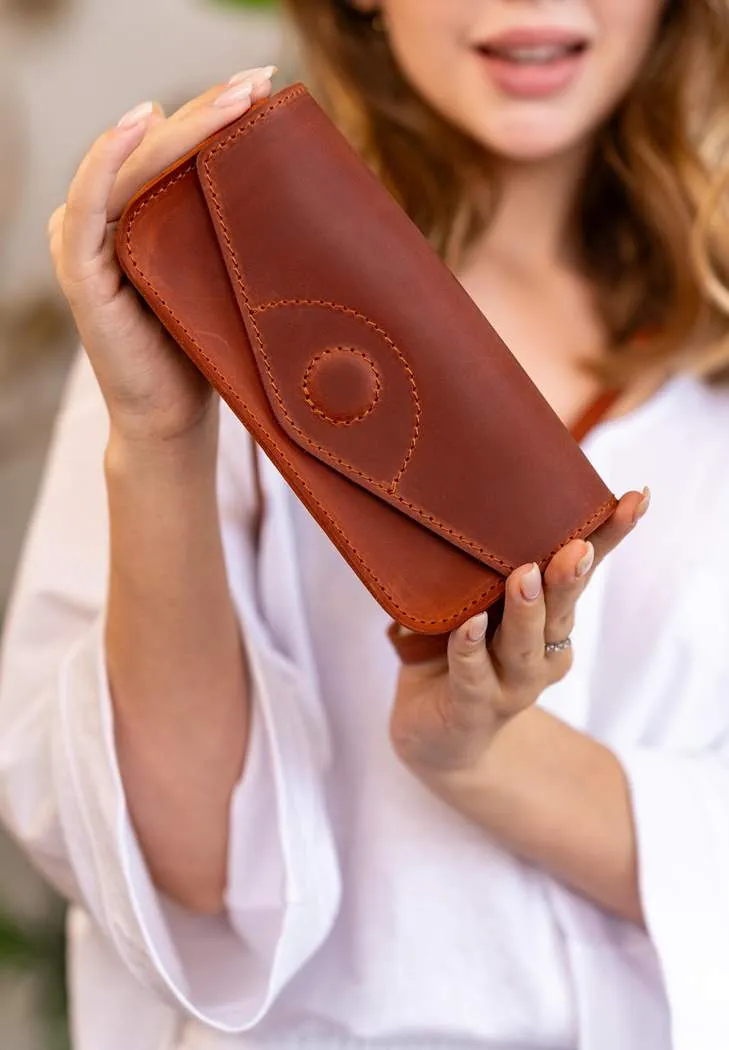 Міні-сумка футляр для окулярів з натуральної шкіри Crazy Horse - це вишуканий аксесуар, який поєднує в собі стиль, функціональність та високу якість. Вона має компактні розміри, які ідеально підходять для зберігання та перенесення окулярів, телефону або інших важливих дрібничок.