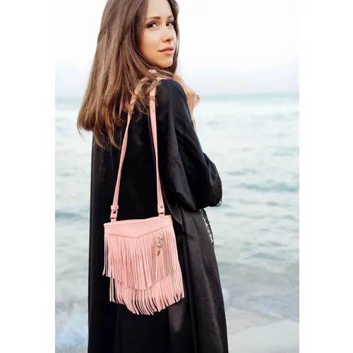 Шкіряна жіноча сумка з бахромою міні-кросбоді Fleco рожева