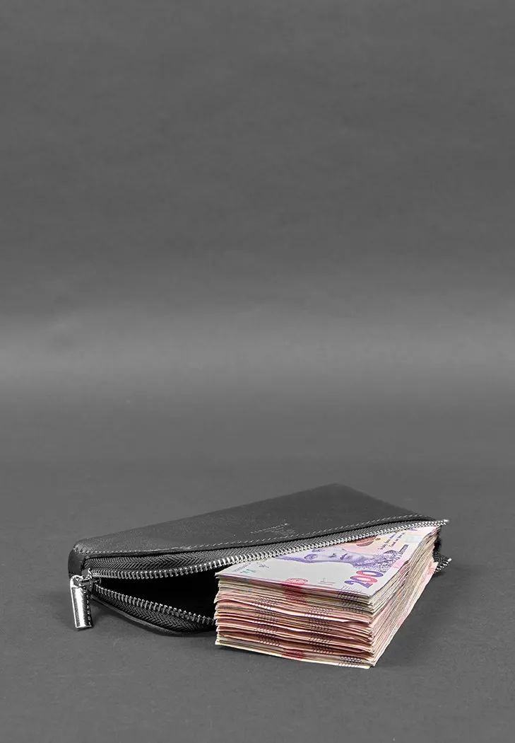 Шкіряне портмоне-купюрник на блискавці 14.0 Чорне