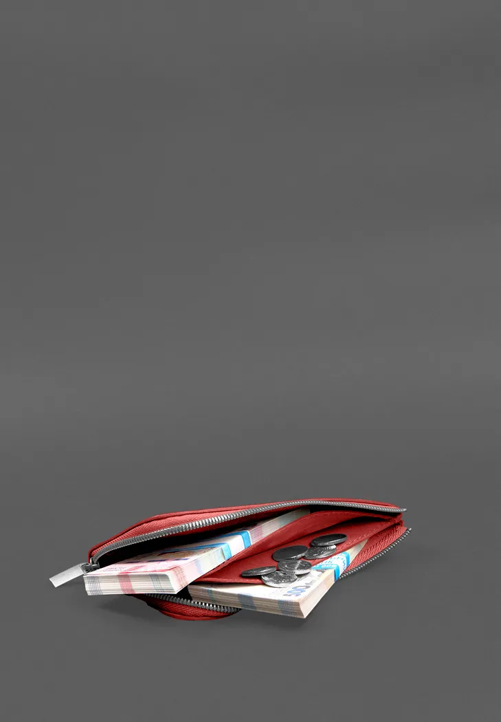 Шкіряне портмоне-купюрник на блискавці 14.1 червоне