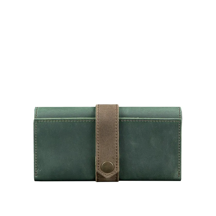 Шкіряне жіноче портмоне 3.0 зелене з коричневим