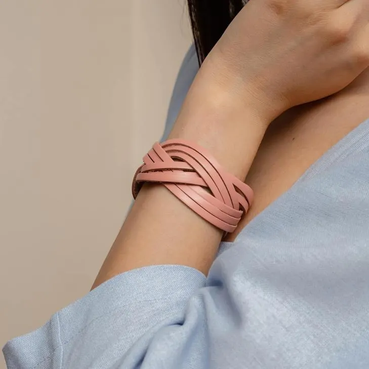 Шкіряний браслет рожевий кіска відмінно підходить для повсякденного носіння і може служити яскравим акцентом в образі. Рожевий колір надає легкості та жіночності, а текстура кіски додає цікавий об'єм, що гармонійно поєднується як з діловим, так і з повсякденним стилем.