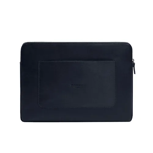 Шкіряний чохол для ноутбука на блискавці з хлястиком та кишенею Синій