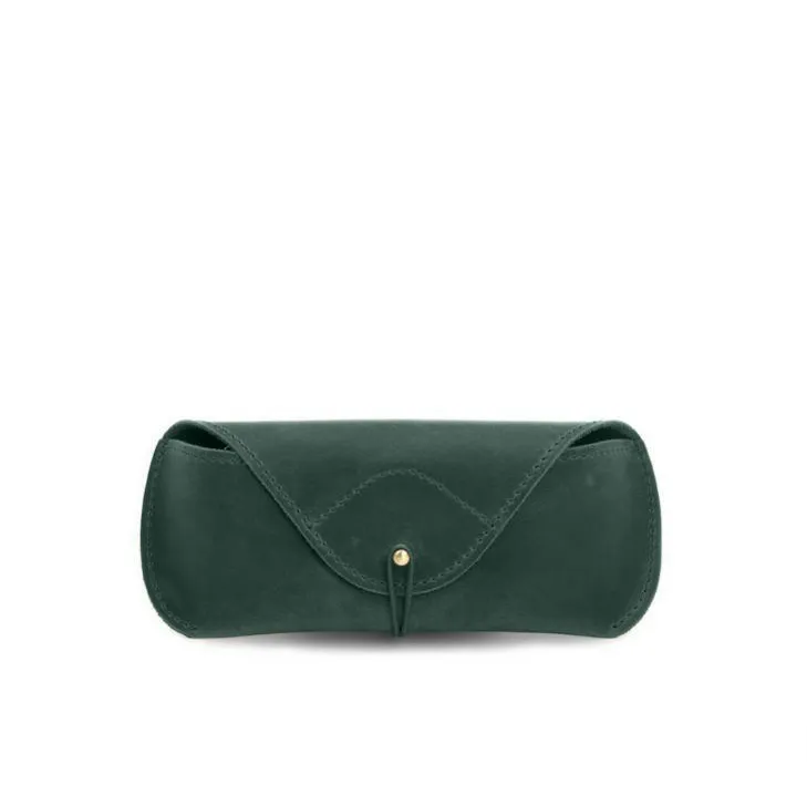 Шкіряний чохол для окулярів із клапаном на гумці Зелений Crazy Horse