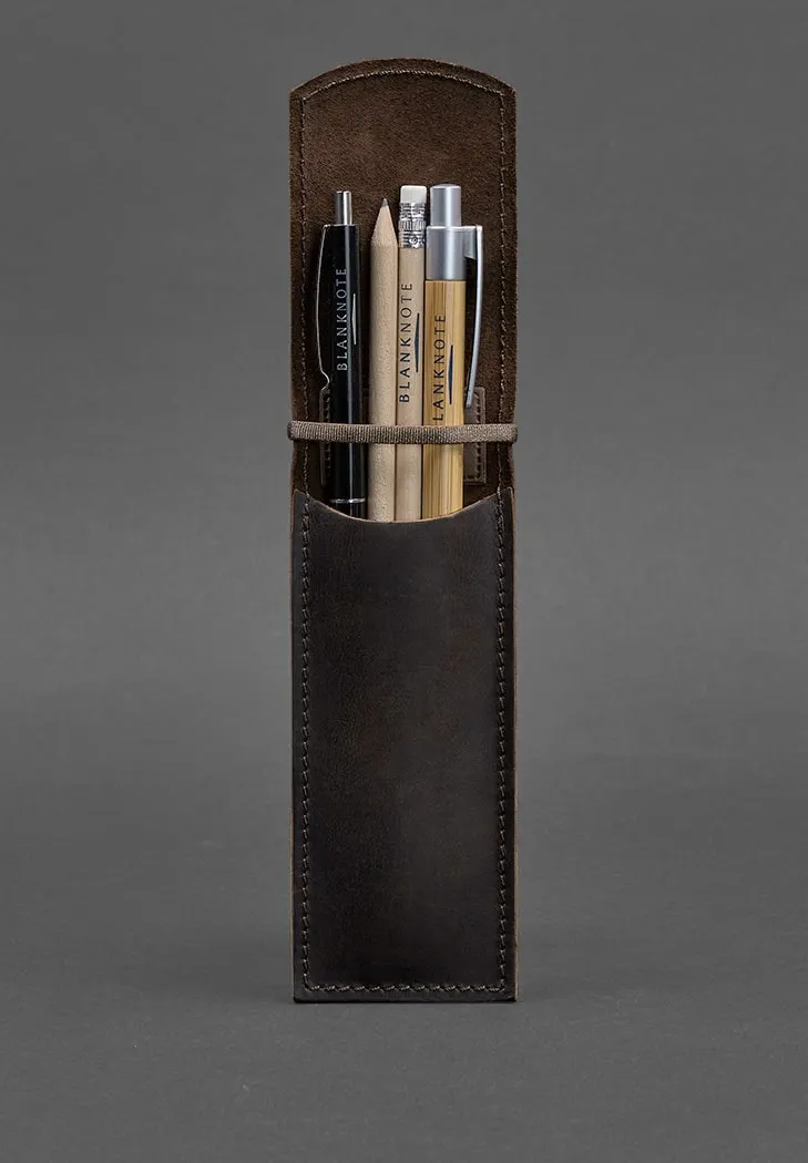 Цей шкіряний чохол для ручок 1.0 темно-коричневий Crazy Horse виготовлений з натуральної італійської шкіри високої якості. Він призначений для надійного захисту як дорогих брендованих ручок, так і простих олівців, забезпечуючи зручність при їх перенесенні. Чохол закривається за допомогою резинки, що запобігає випадінню вмісту і захищає сумки від можливого забруднення чорнилом та пастою.